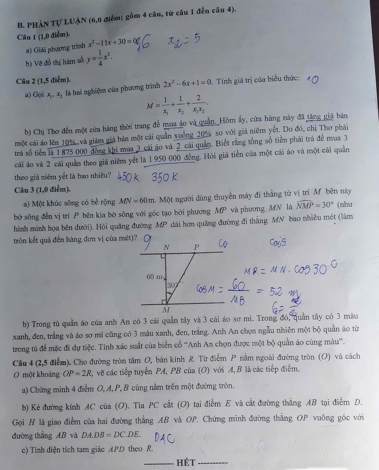 3. Đáp án đề thi vào 10 môn Toán Cần Thơ 2024