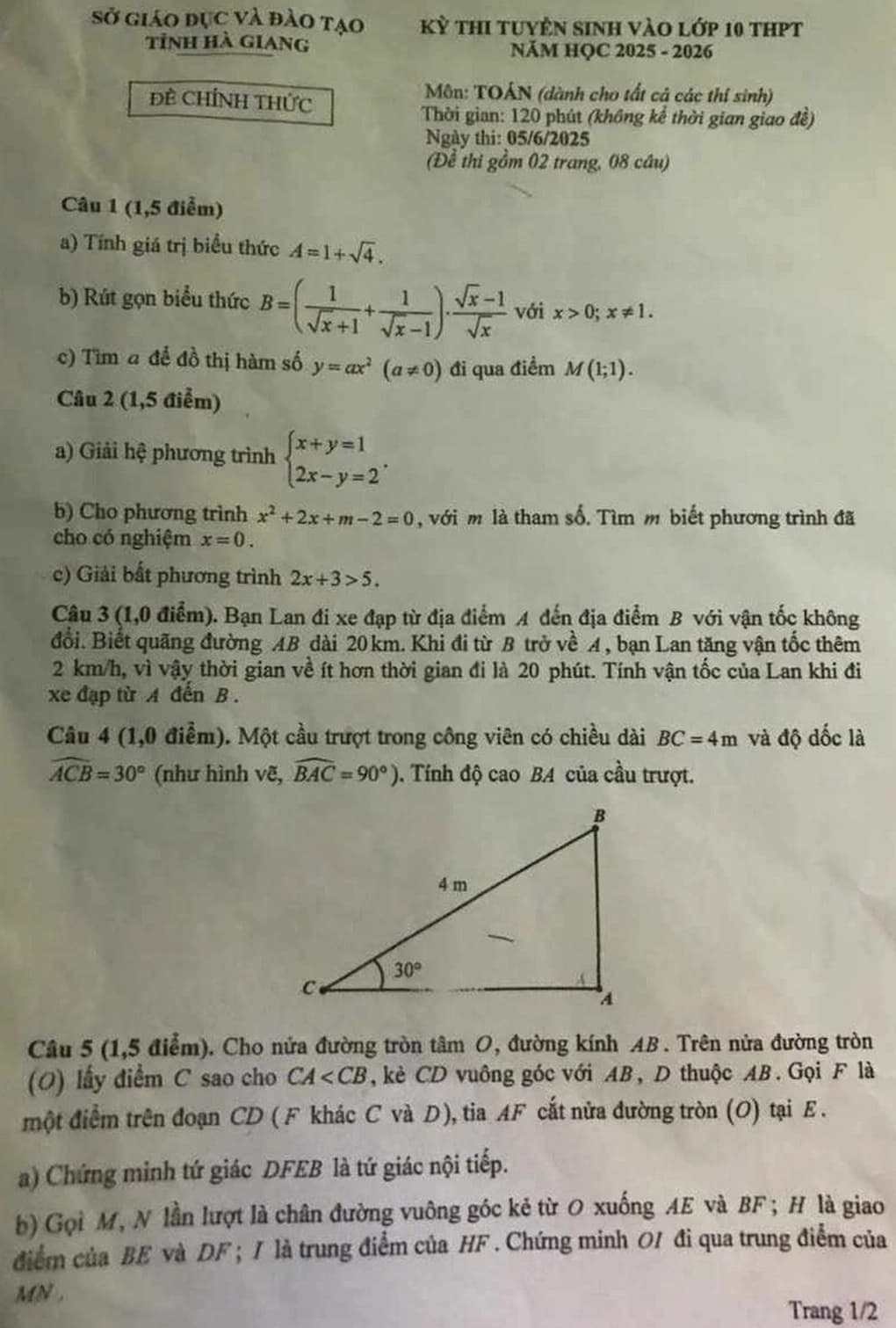 1. Đề thi vào 10 môn Toán Hà Giang 2025