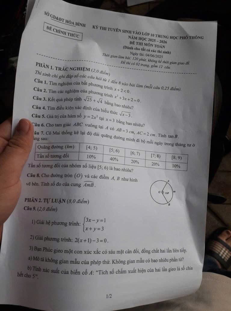 2. Đề thi vào 10 Toán Hòa Bình 2025