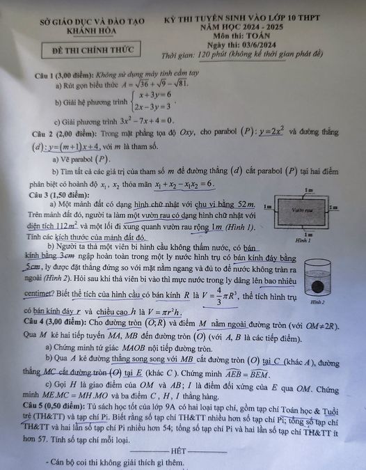 Đề thi tuyển sinh lớp 10 môn Toán 2025 Khánh Hòa