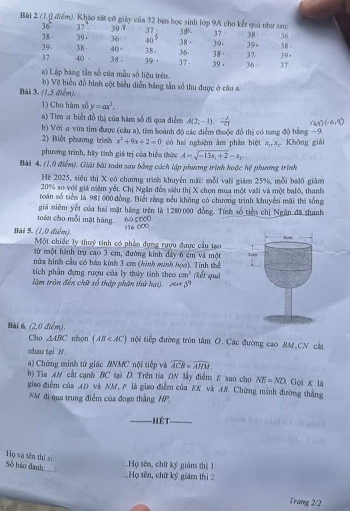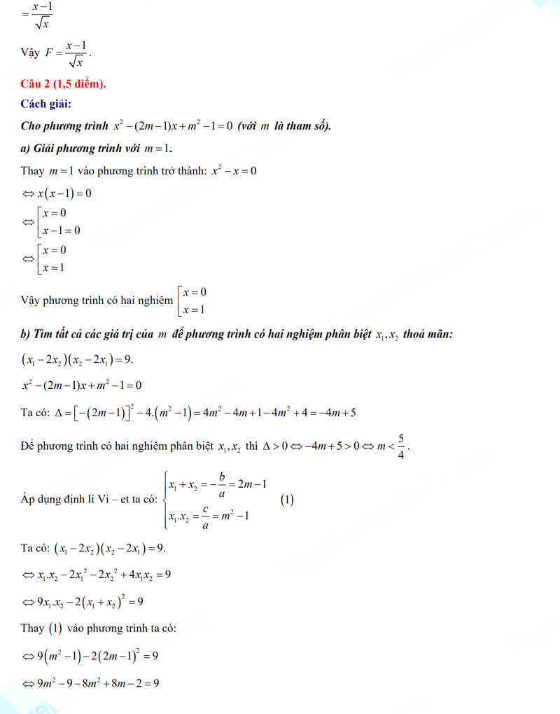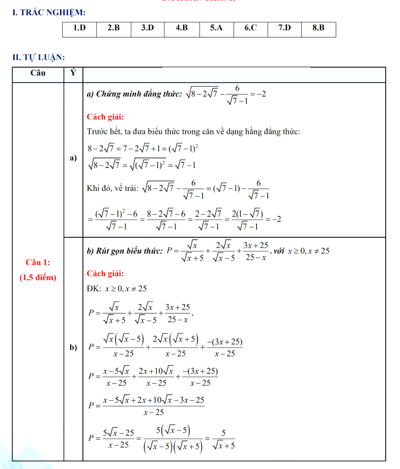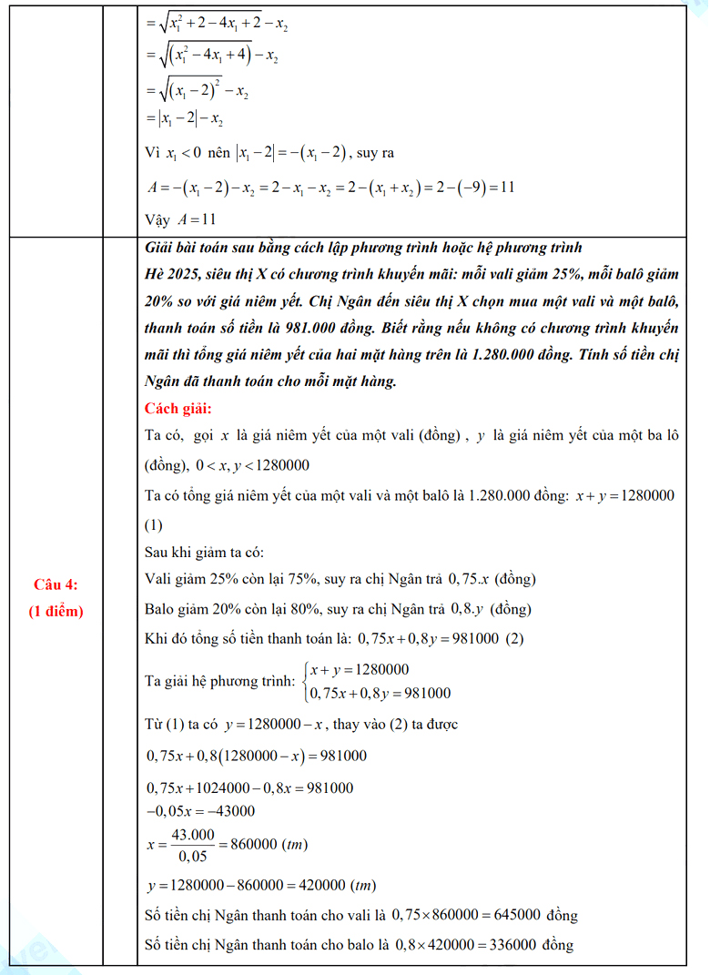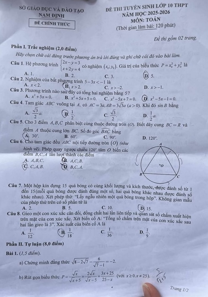 2. Đáp án đề thi vào 10 môn Toán Nam Định 2025