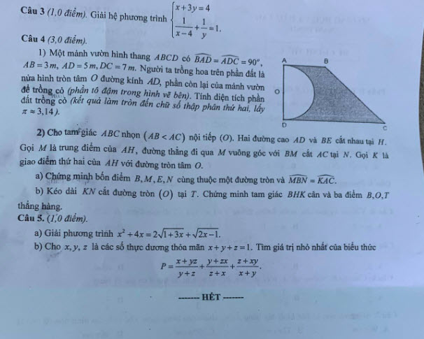 4. Đề thi vào 10 môn Toán Nam Định 2024