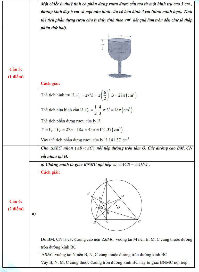 5. Đáp án đề thi tuyển sinh lớp 10 môn Toán Nam Định 2023