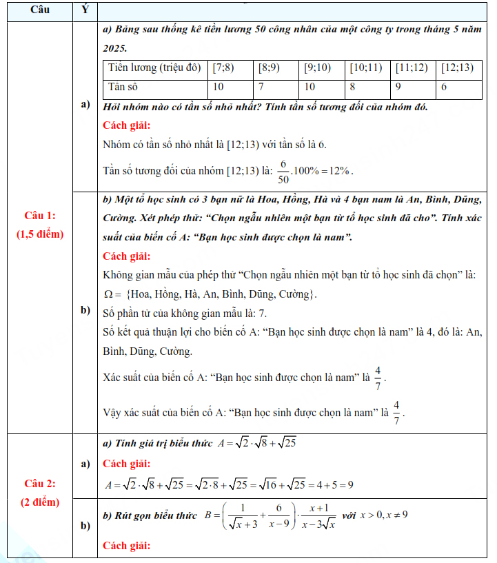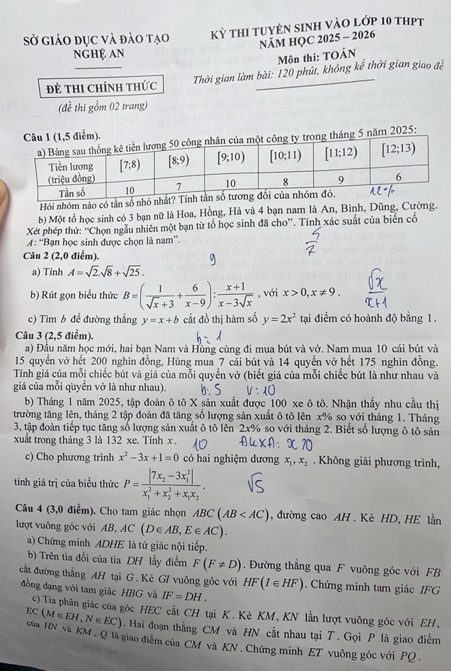 1. Đáp án đề thi vào 10 môn Toán Nghệ An 2025