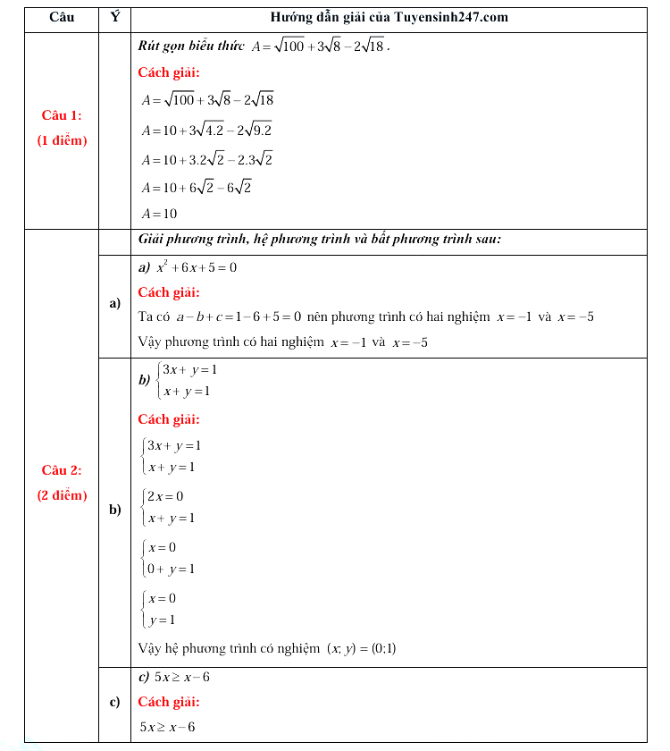 1. Đáp án đề thi vào 10 Toán Sóc Trăng 2025