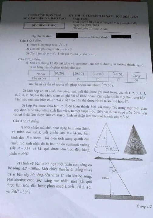 Đề thi vào 10 môn Toán 2025 Kon Tum