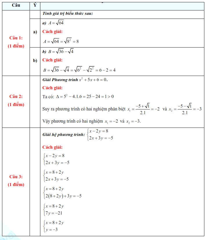 1. Đáp án đề thi vào 10 môn Toán Lào Cai 2025