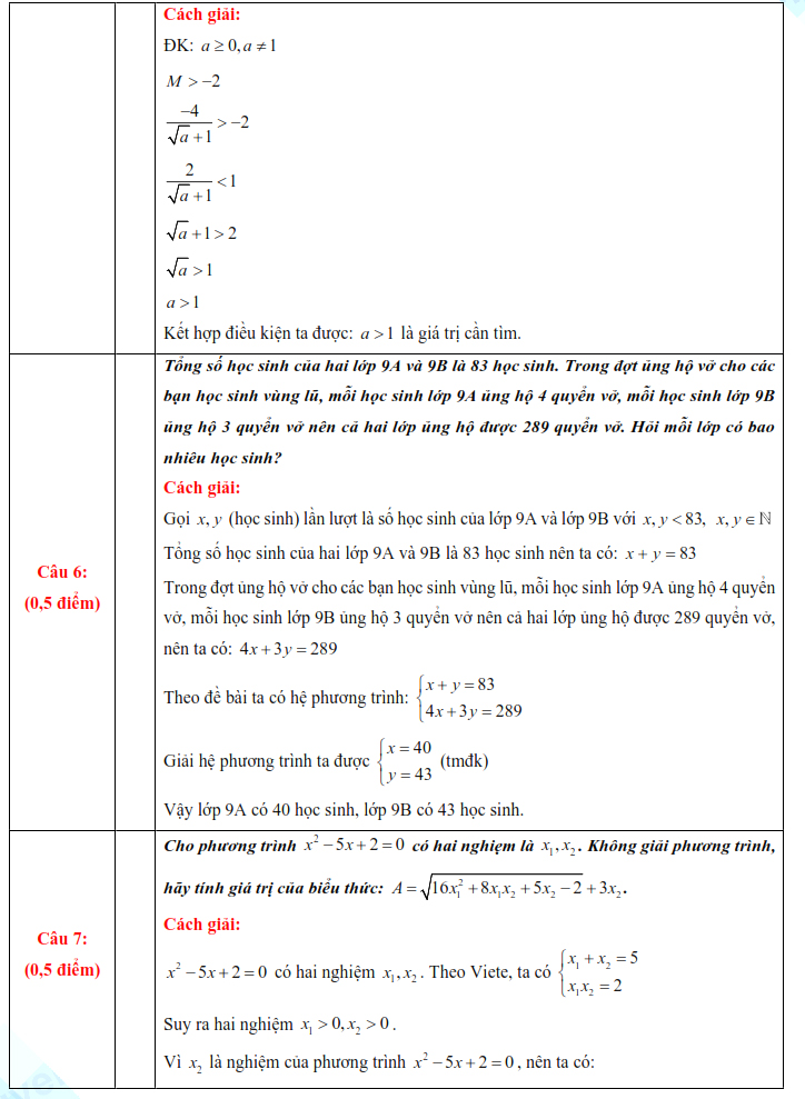 6. Đáp án đề thi tuyển sinh lớp 10 môn Toán tỉnh Lào Cai 2023