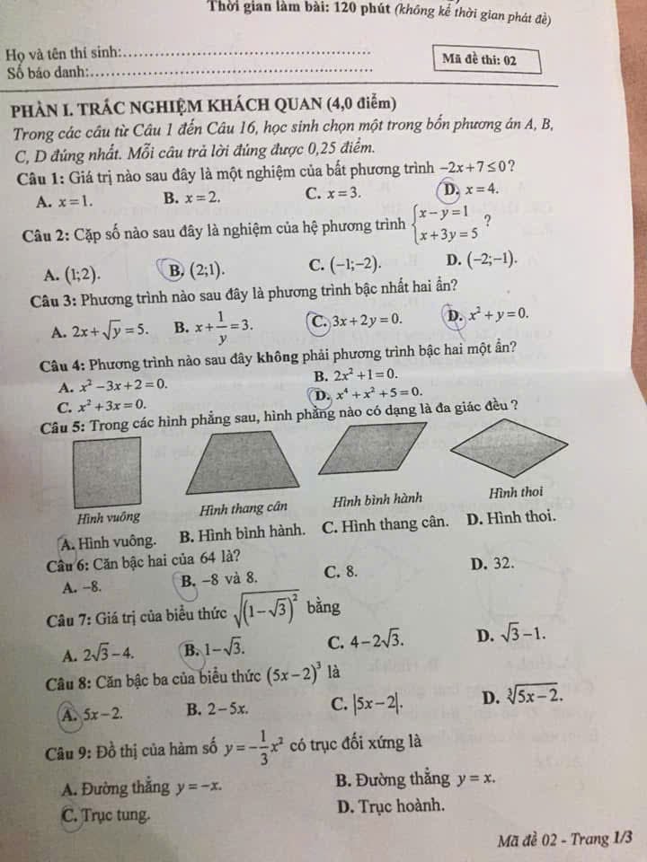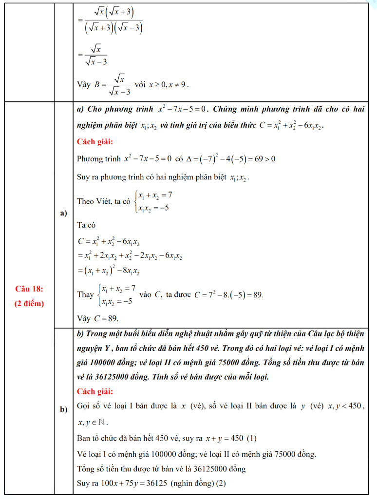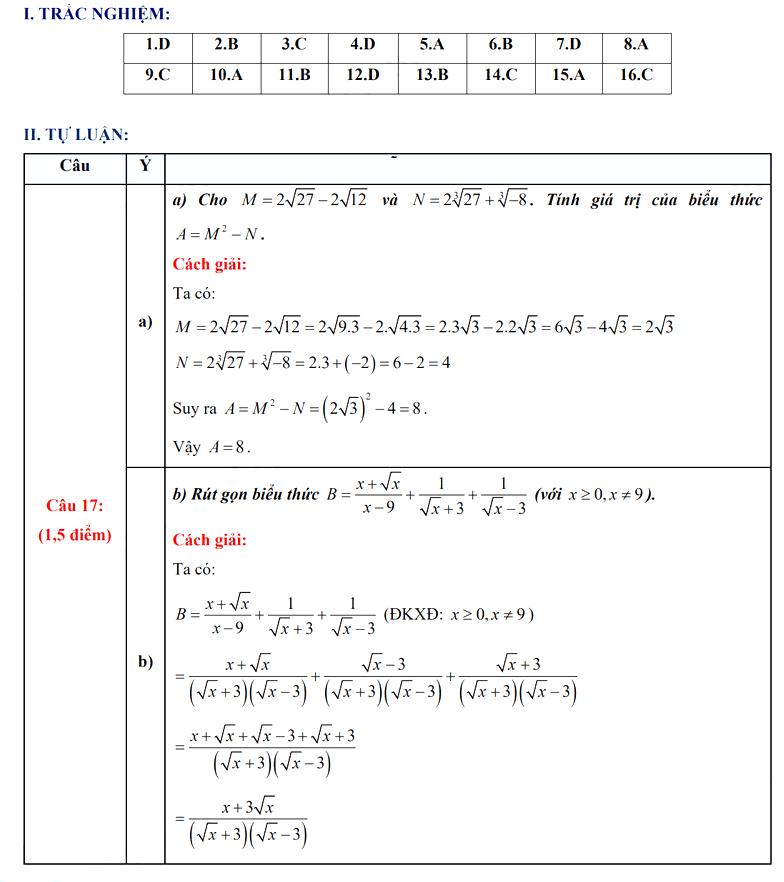 7. Đáp án đề thi tuyển sinh lớp 10 môn Toán tỉnh Quảng Bình 2022