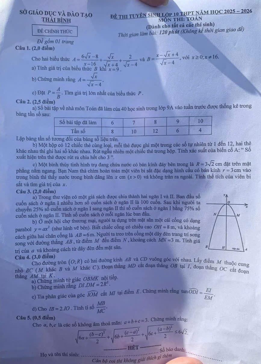 2. Đề thi vào lớp 10 môn Toán Thái Bình năm 2025