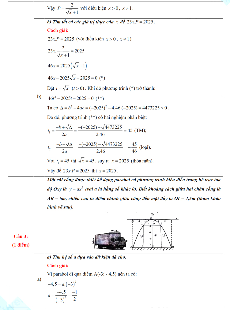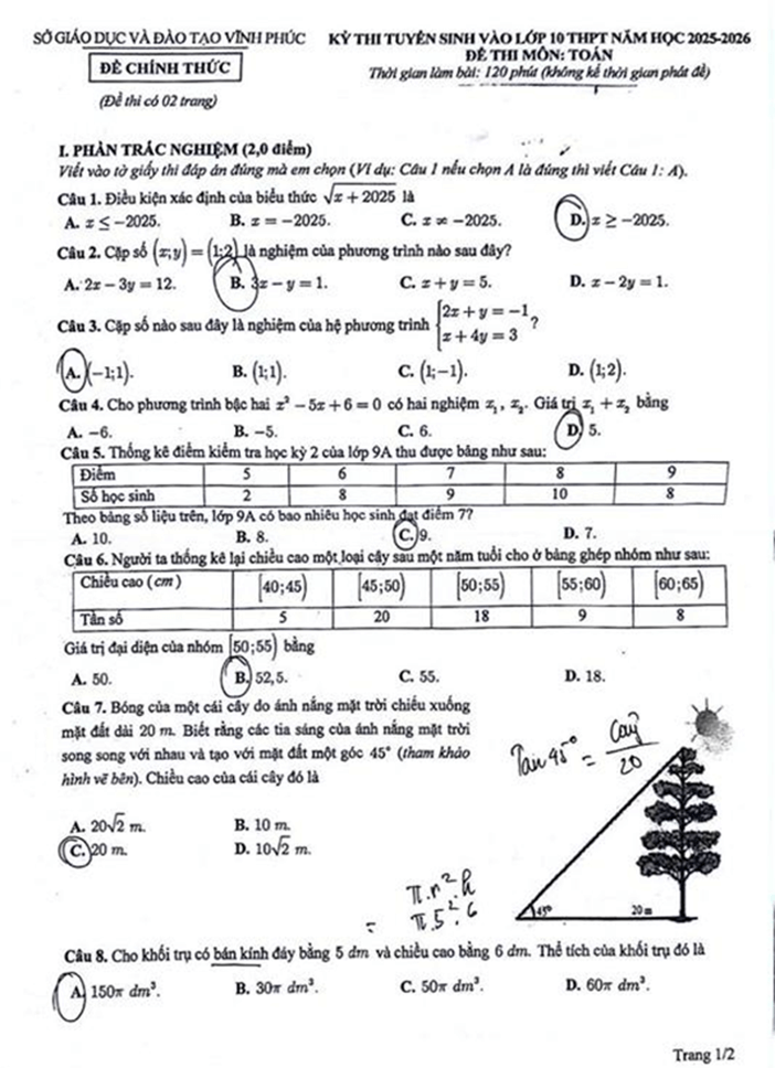 1. Đáp án đề thi vào lớp 10 môn Toán Vĩnh Phúc 2025