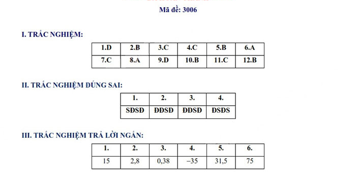| Câu | Đ/a | Câu | Đ/a | Câu | Đ/a | Câu | Đ/a | Câu | Đ/a |