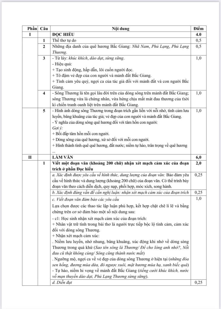 2. Đáp án Đề thi vào 10 môn Văn Bắc Giang 2025