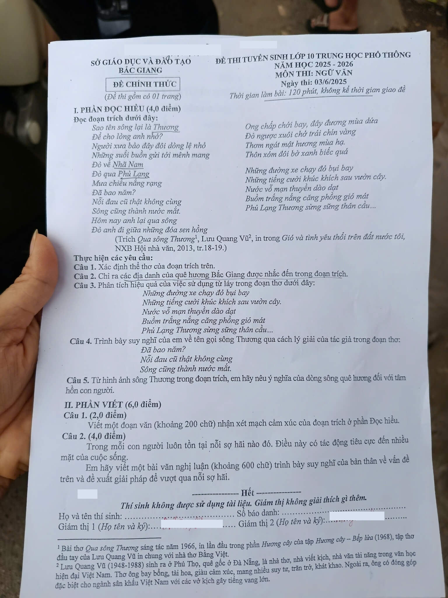 1. Đề thi vào 10 môn Văn Bắc Giang 2025