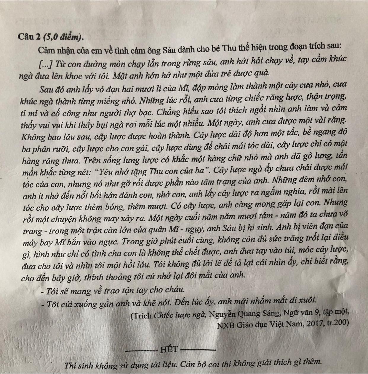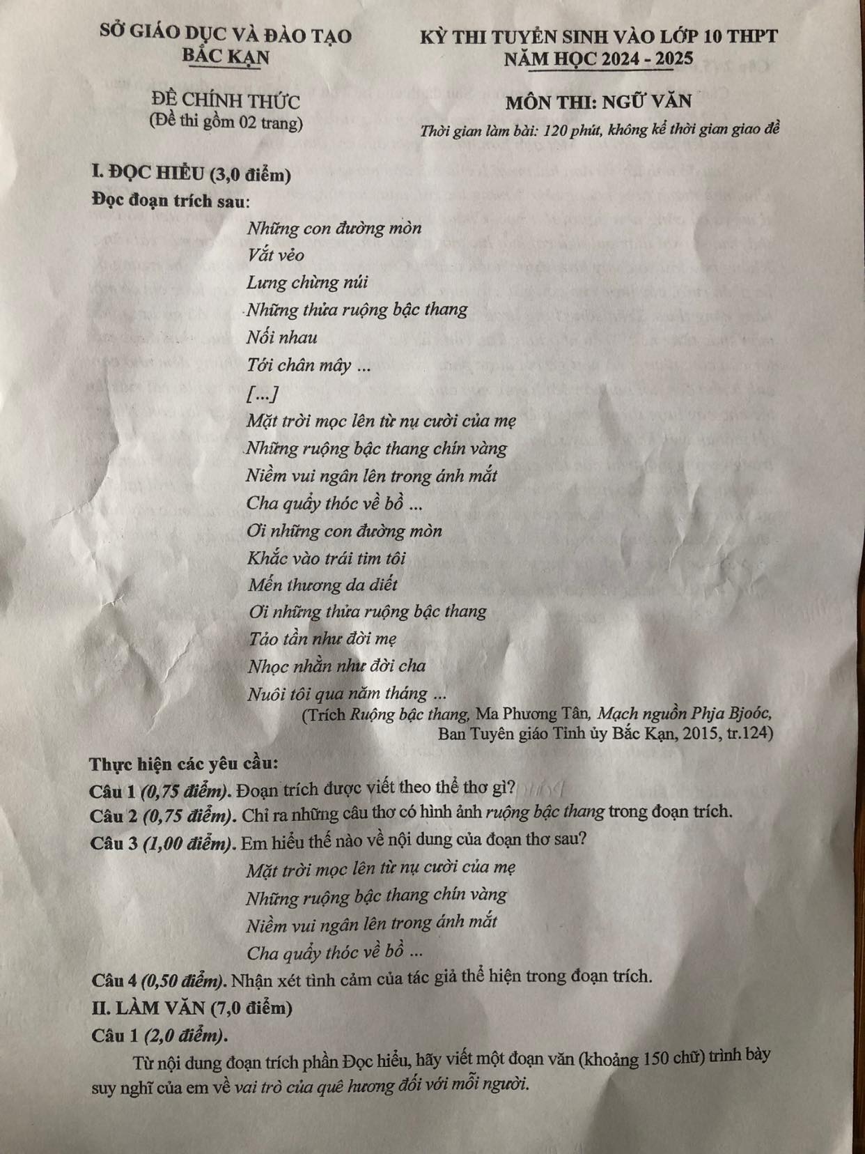 3. Đề thi vào 10 Văn Bắc Kạn 2024