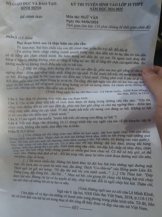 4. Đề thi vào 10 môn Văn Bình Định 2024