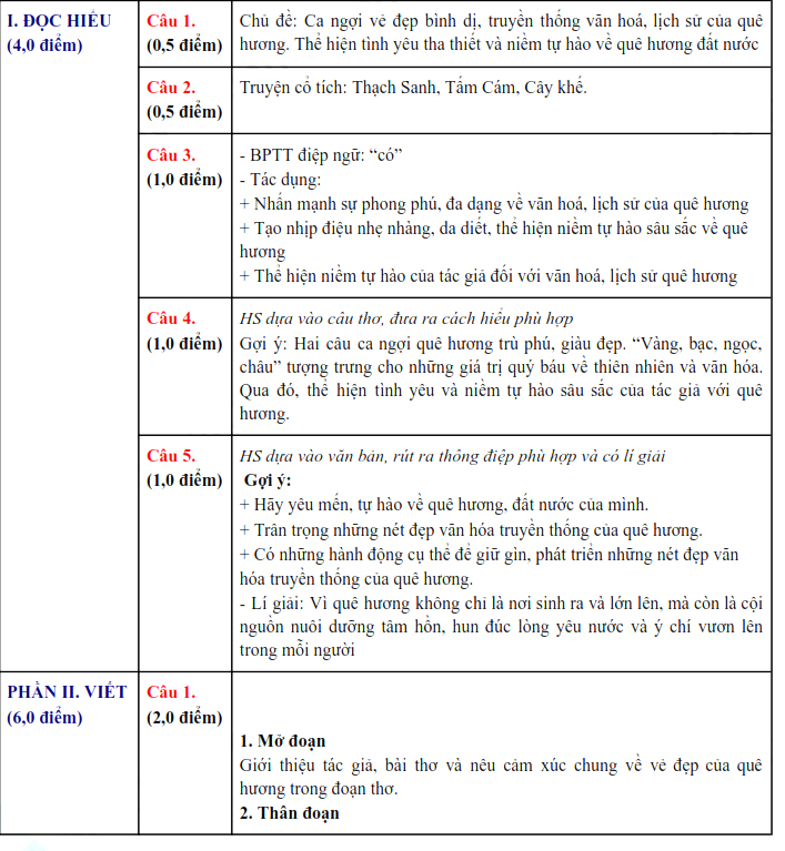1. Đáp án đề thi vào 10 Văn Bình Định 2025