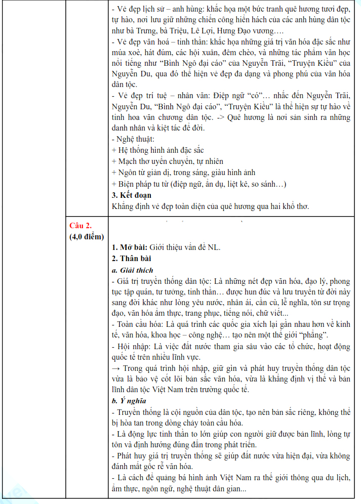 3. Đáp án đề thi vào 10 Văn Bình Định 2024