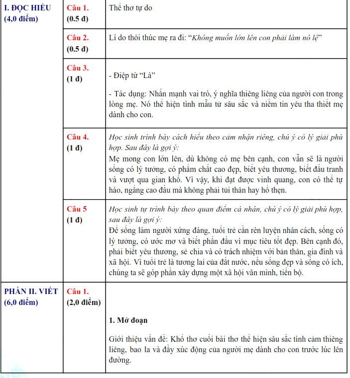 1. Đáp án đề thi vào 10 Văn Cần Thơ 2025