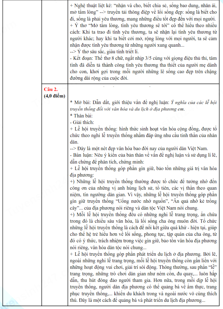 4. Đáp án đề thi vào lớp 10 môn Văn Cao Bằng 2024