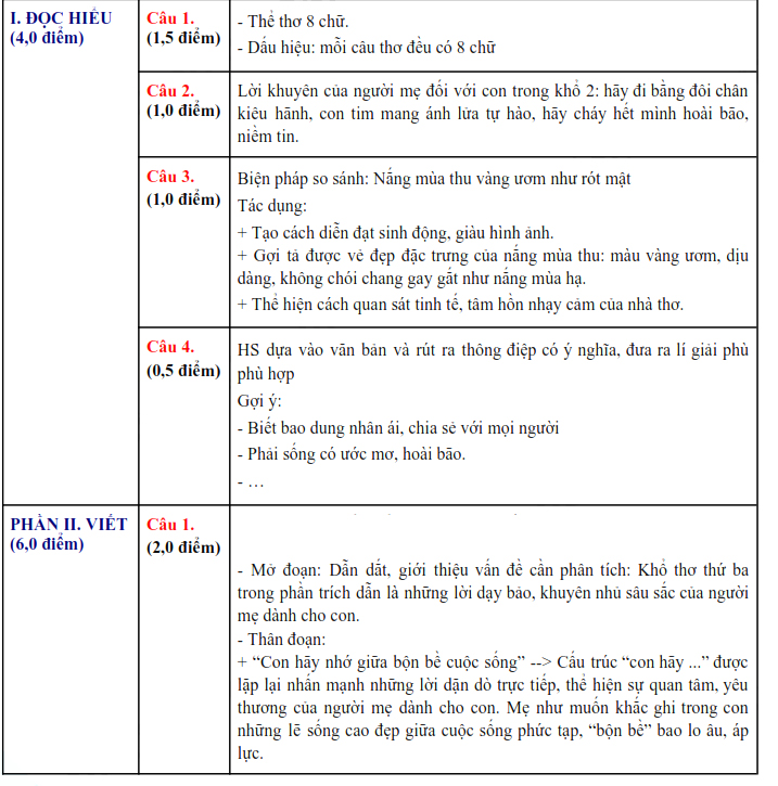 1. Đáp án đề thi vào 10 môn Văn Cao Bằng 2025