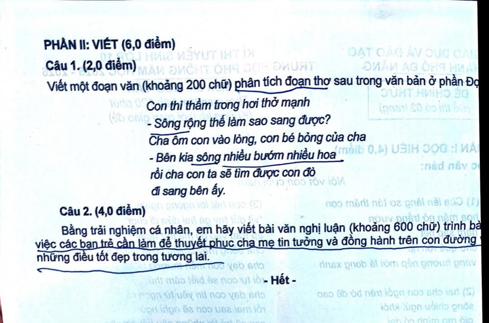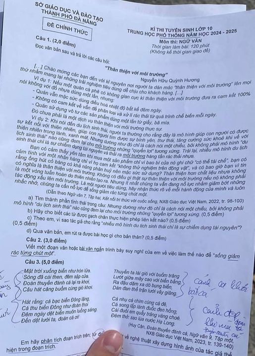 1. Đề thi vào 10 môn Văn Đà Nẵng 2025