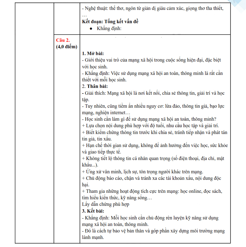 1. Đáp án đề thi vào 10 môn Văn Hòa Bình 2025