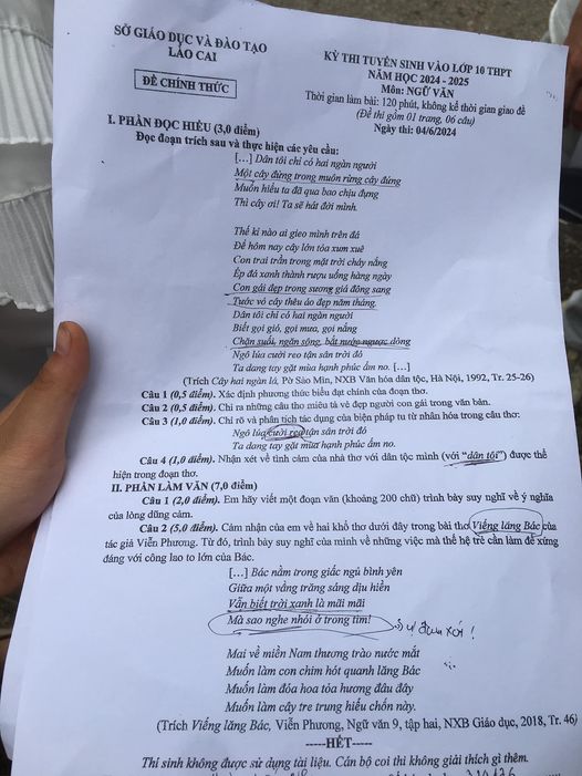4. Đề thi vào 10 Văn Lào Cai 2024
