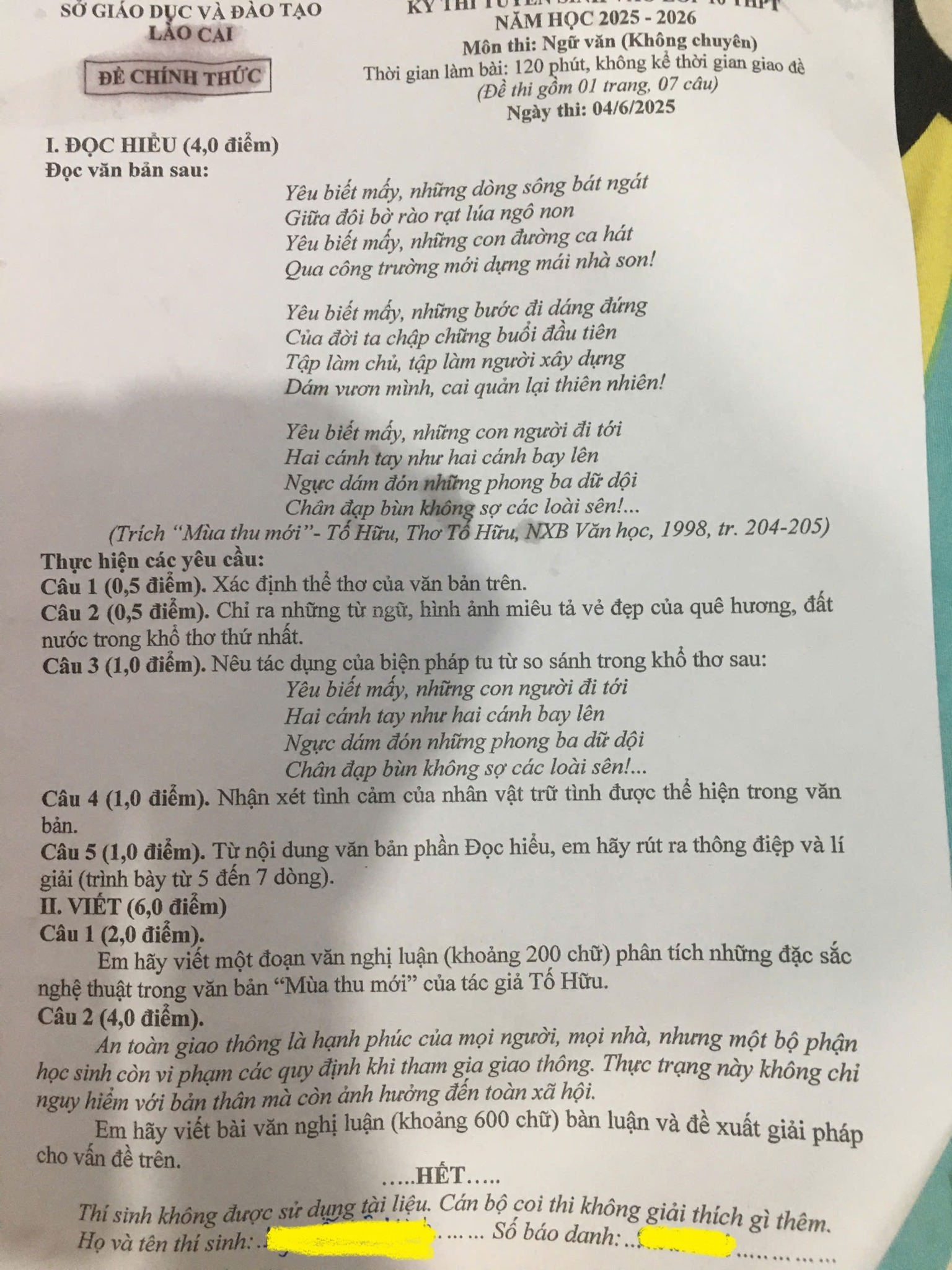 2. Đề thi vào 10 Văn Lào Cai 2025