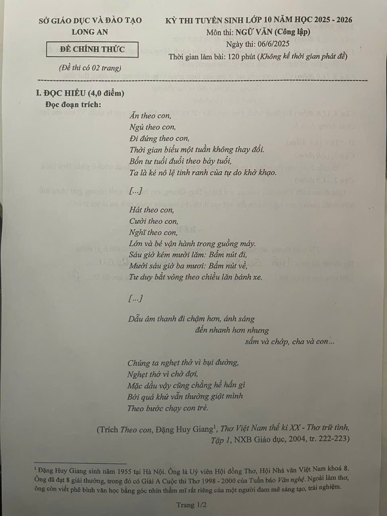 2. Đề thi vào 10 môn Văn Long An 2025