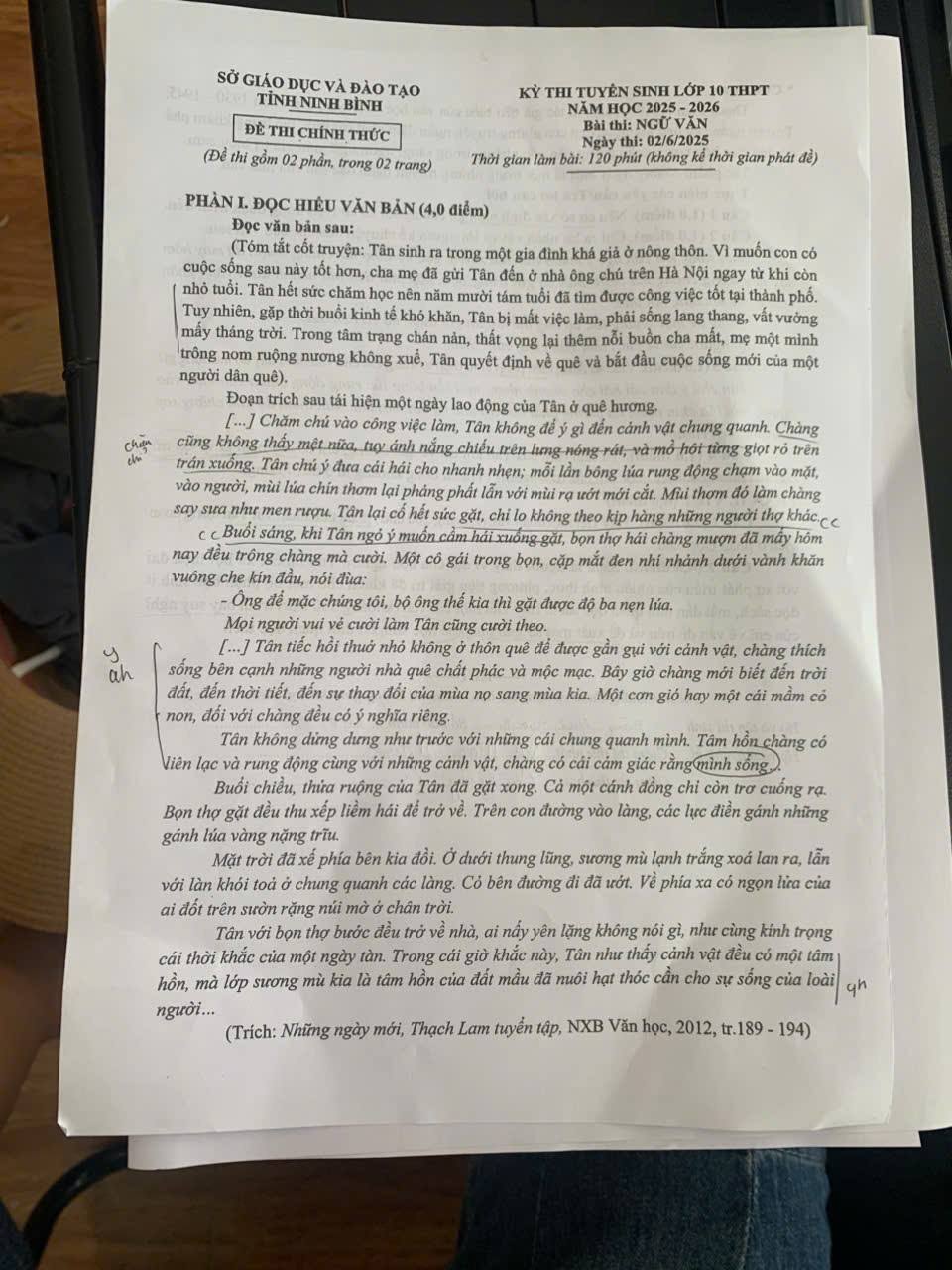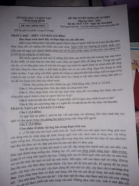 2. Đề thi vào 10 Văn Ninh Bình 2025