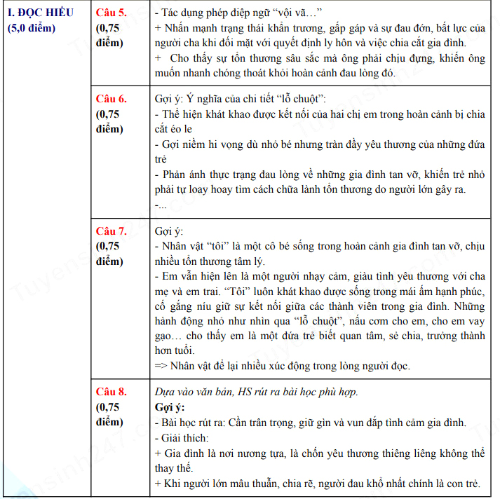 2. Đáp án đề thi vào lớp 10 môn Văn Quảng Nam năm 2025