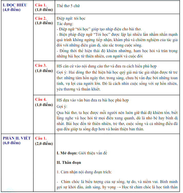 1. Đáp án đề thi vào 10 Văn Tây Ninh 2025