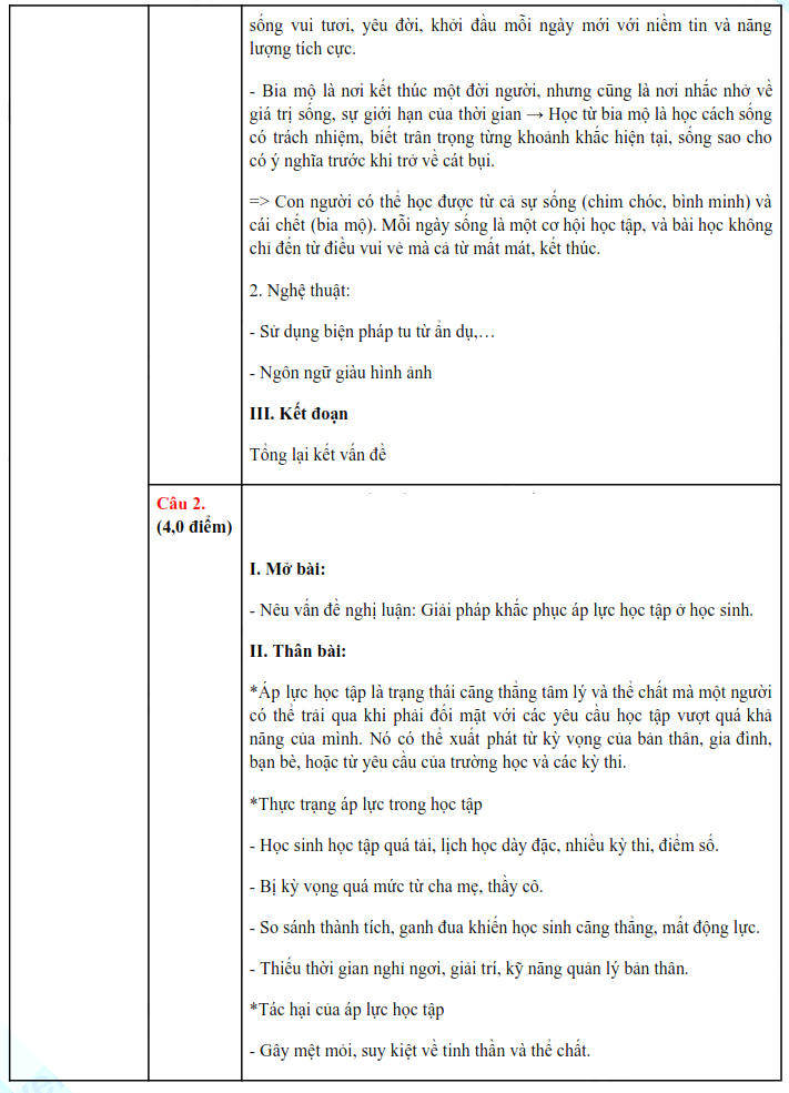 3. Đáp án đề thi vào 10 Văn Tây Ninh 2024