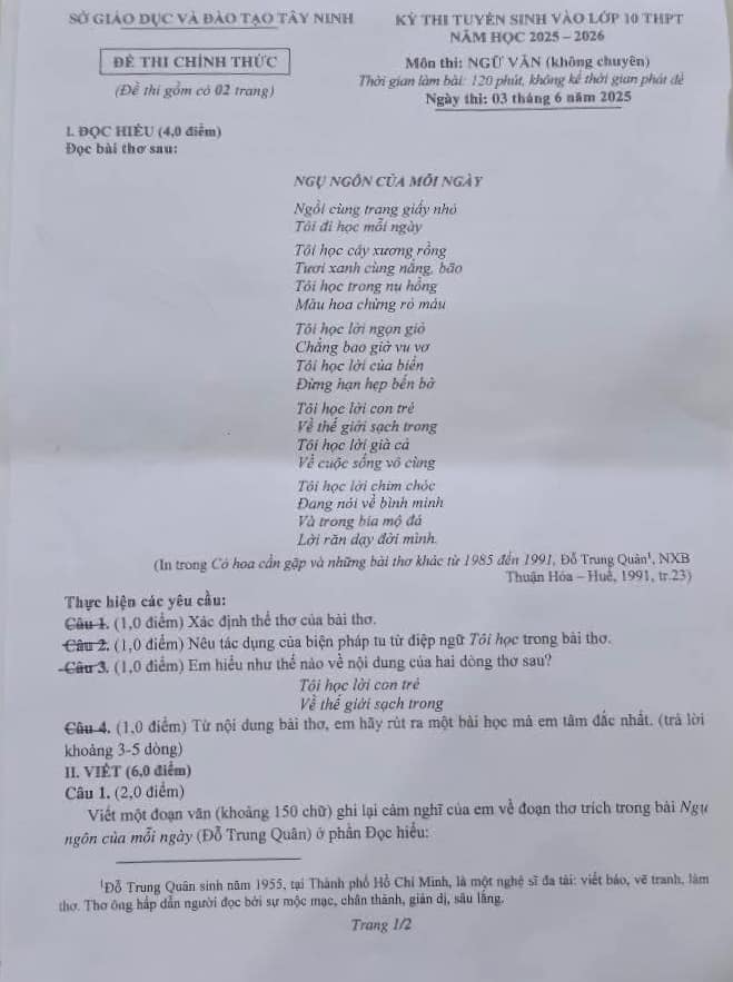 2. Đề thi vào 10 Văn Tây Ninh 2025