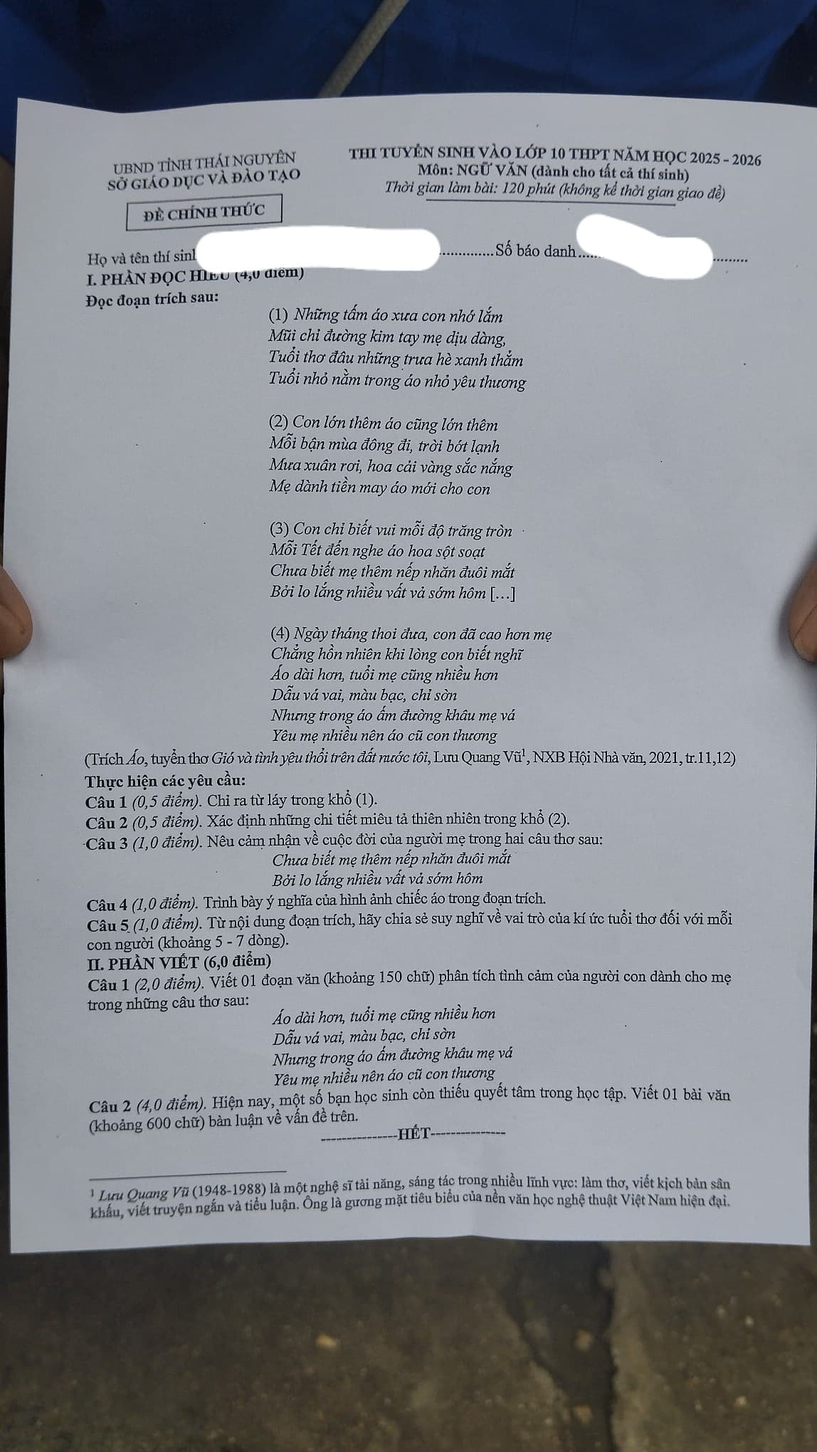 2. Đề thi vào 10 môn Văn Thái Nguyên 2025