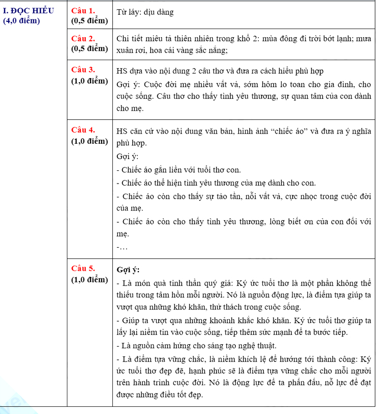 1. Đáp án đề thi vào 10 môn Văn Thái Nguyên 2025