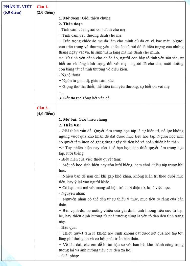 3. Đáp án đề thi vào 10 môn Văn Thái Nguyên 2024