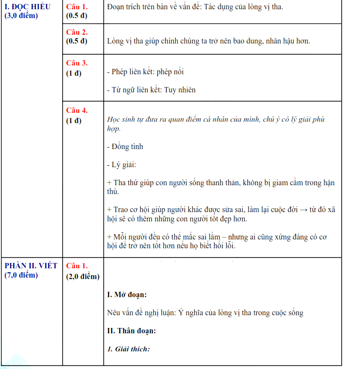 I. ĐỌC HIỂU