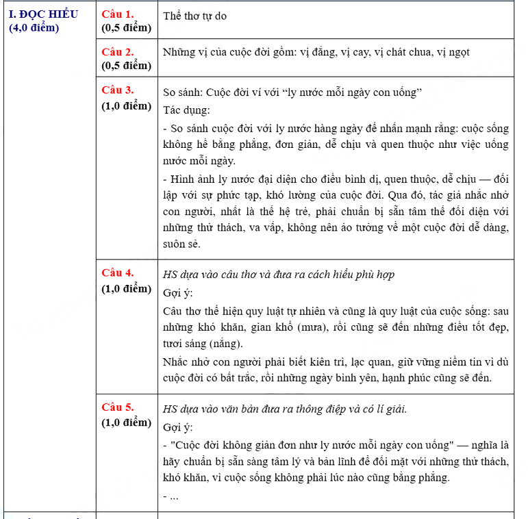 2. Đáp án đề thi tuyển sinh lớp 10 môn Văn tỉnh Đắk Nông năm 2025