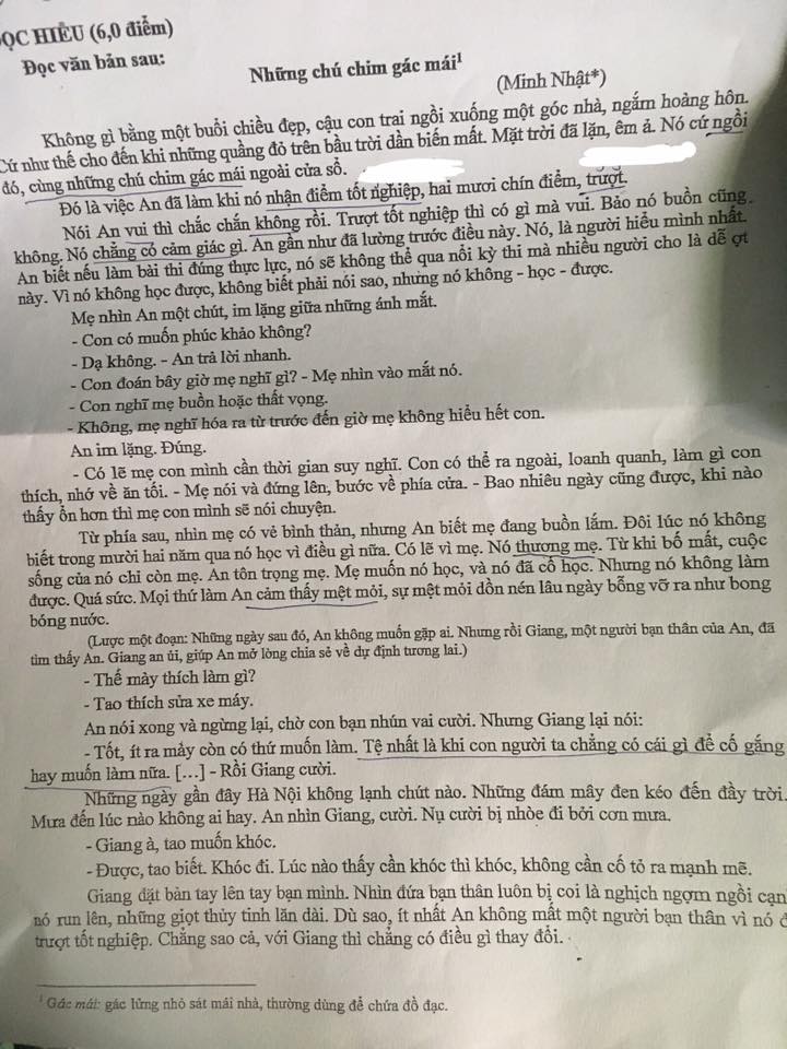 Hình ảnh “những chú chim gác mái”: Là biểu tượng cho sự tự do, khát vọng được bay xa. Chúng tượng trưng cho An – dù từng bị mắc kẹt trên “gác mái” (áp -lực học hành, thất bại), nhưng cuối cùng vẫn có thể tung cánh đến với bầu trời của riêng mình.