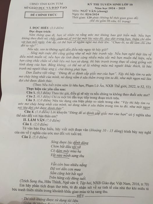 3. Đề thi vào 10 Văn Kon Tum 2024