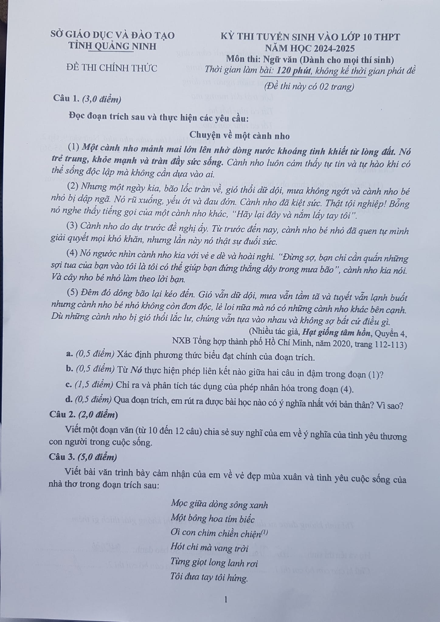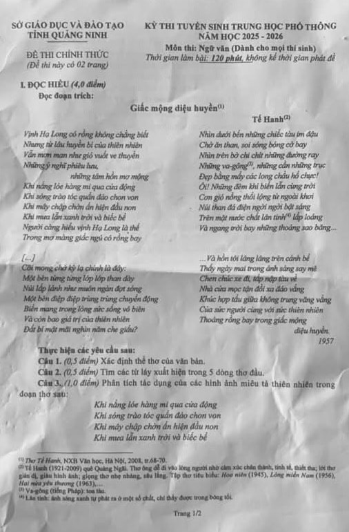 2. Đề vào 10 môn Văn Quảng Ninh 2025