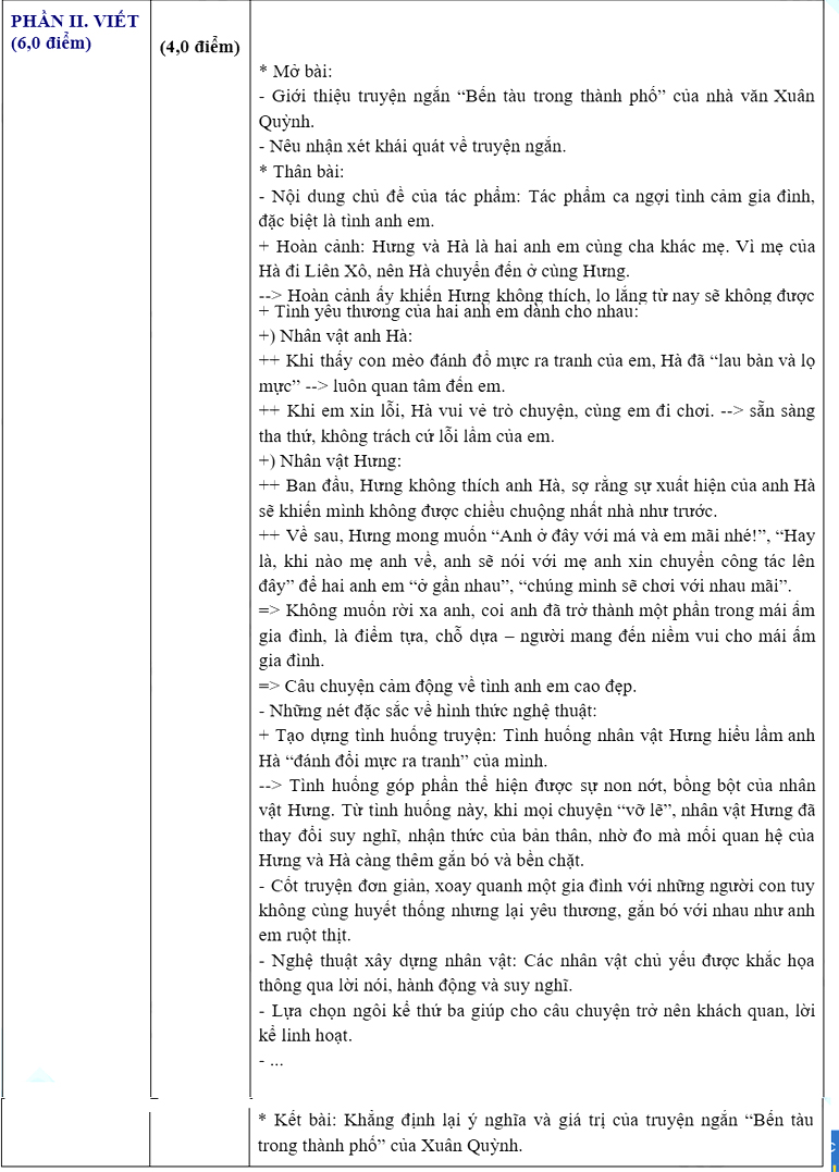7. Đáp án đề vào lớp 10 môn Văn tỉnh Thanh Hóa năm 2022