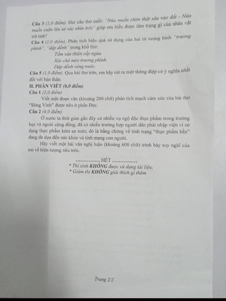 2. Đề thi vào 10 môn Văn Trà Vinh 2025