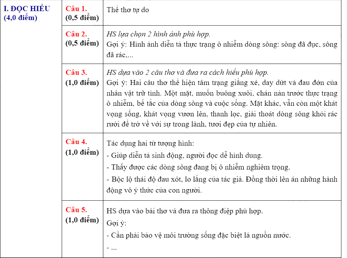 1. Đáp án đề thi vào 10 môn Văn Trà Vinh 2025