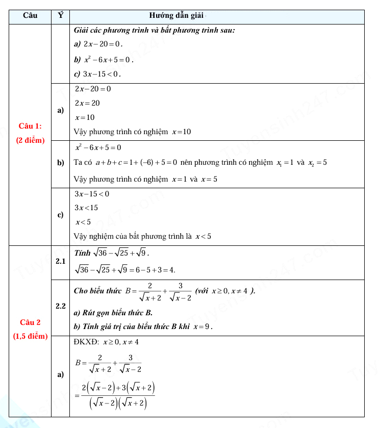 1. Đáp án đề thi vào 10 môn Toán Lai Châu 2025