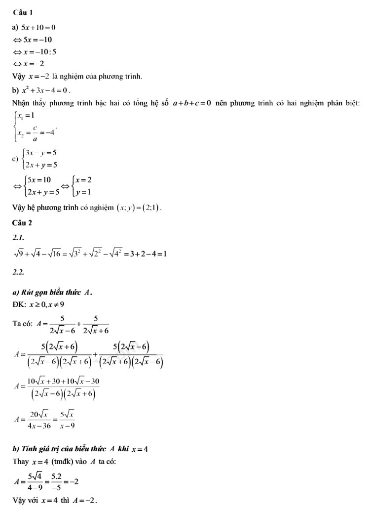 4. Đáp án Đề thi vào 10 môn Toán Lai Châu 2024