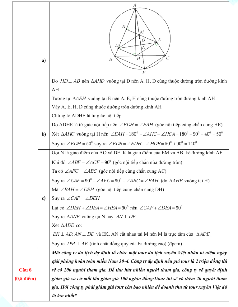 6. Đáp án đề thi Toán vào 10 tỉnh Lai Châu 2023