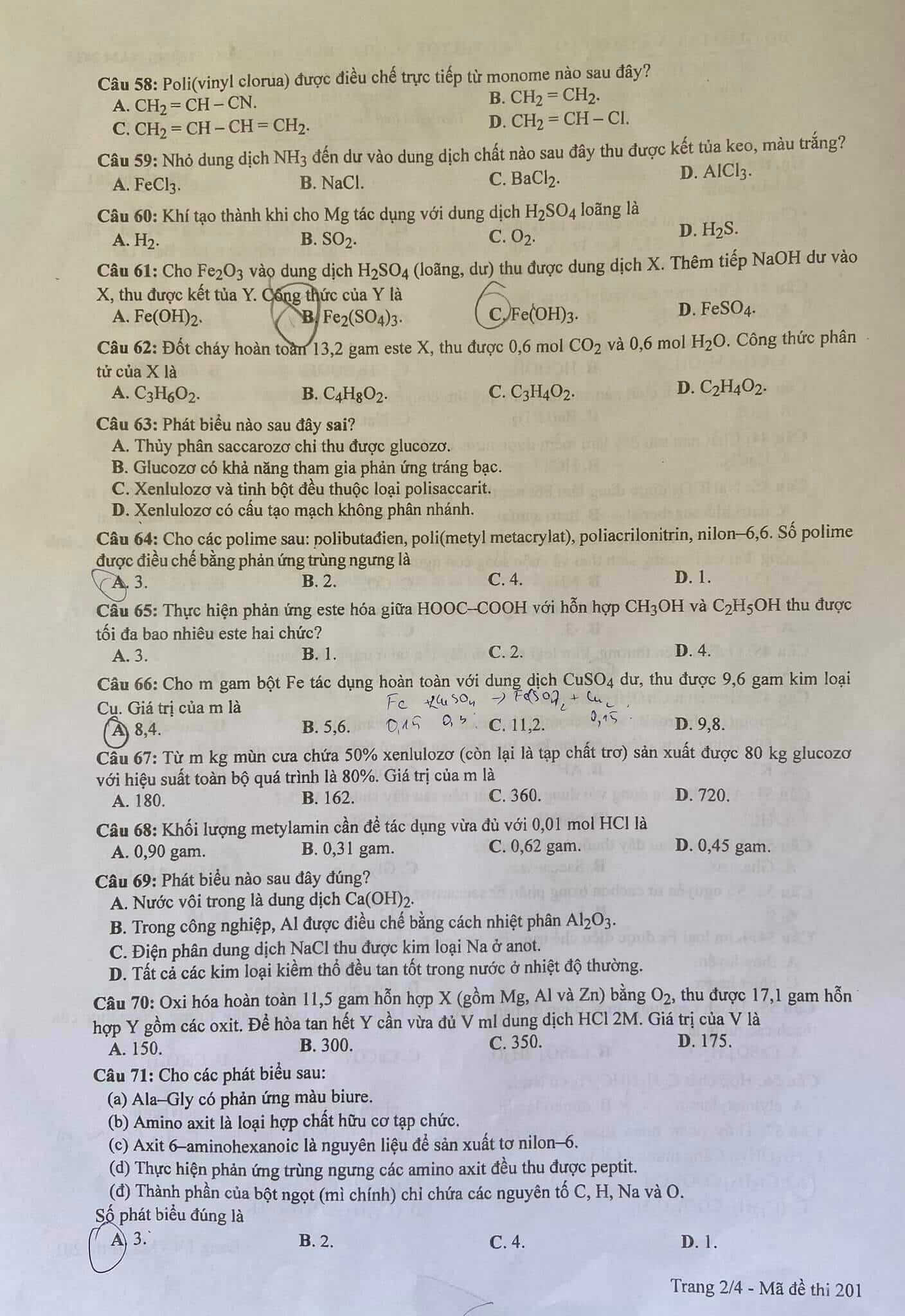 Đáp án Hóa THPT Quốc gia 2023 (FULL 24 MÃ ĐỀ)